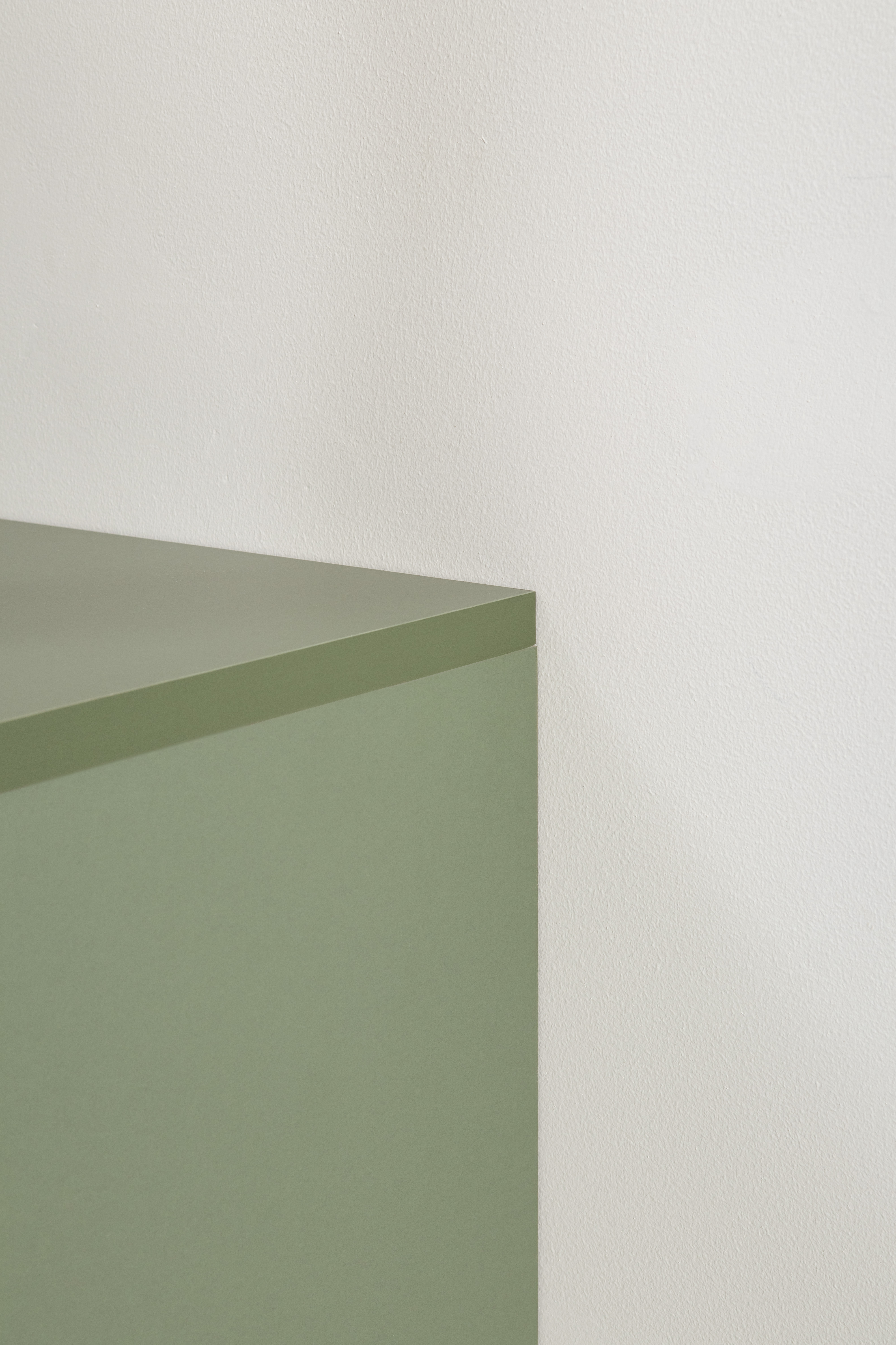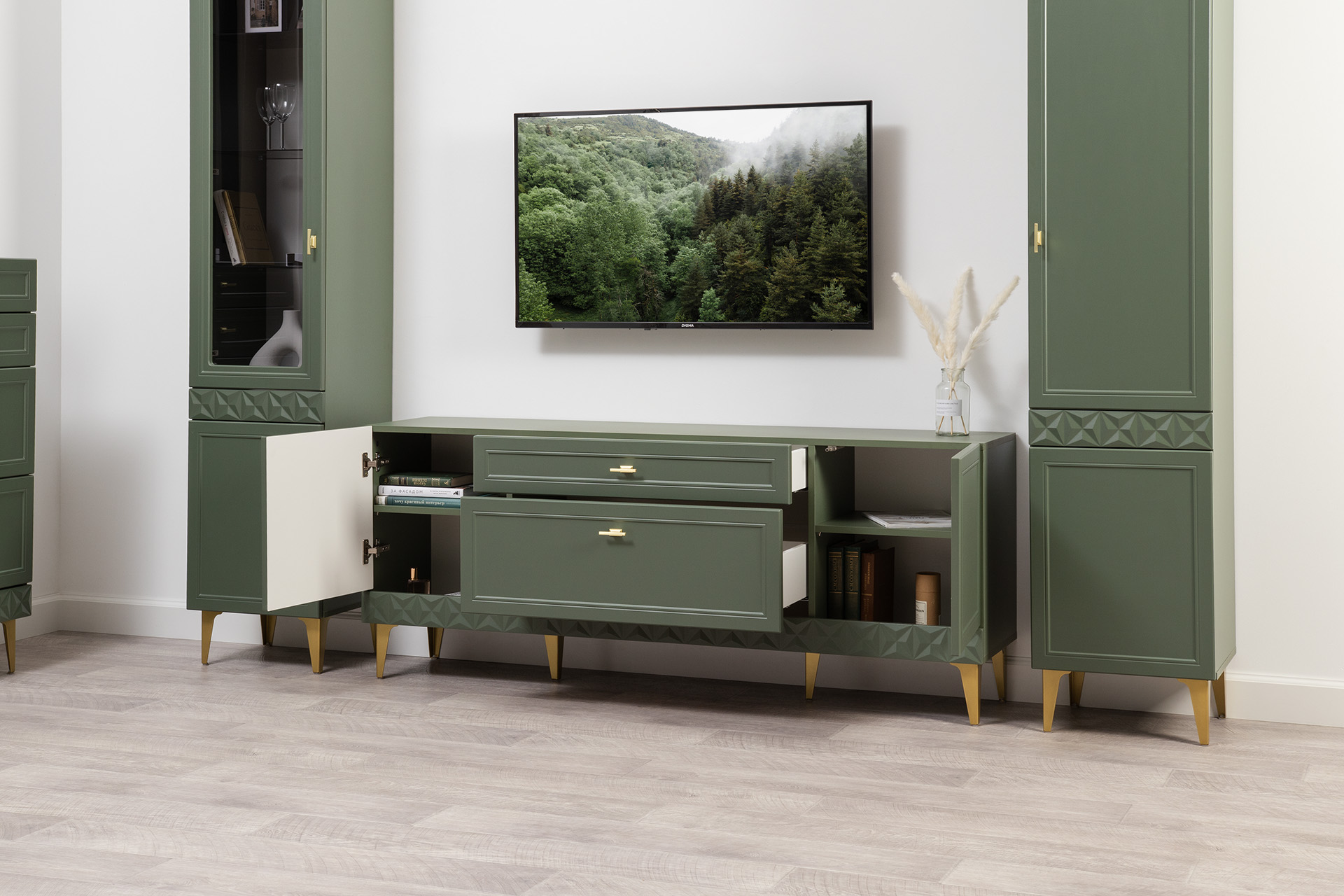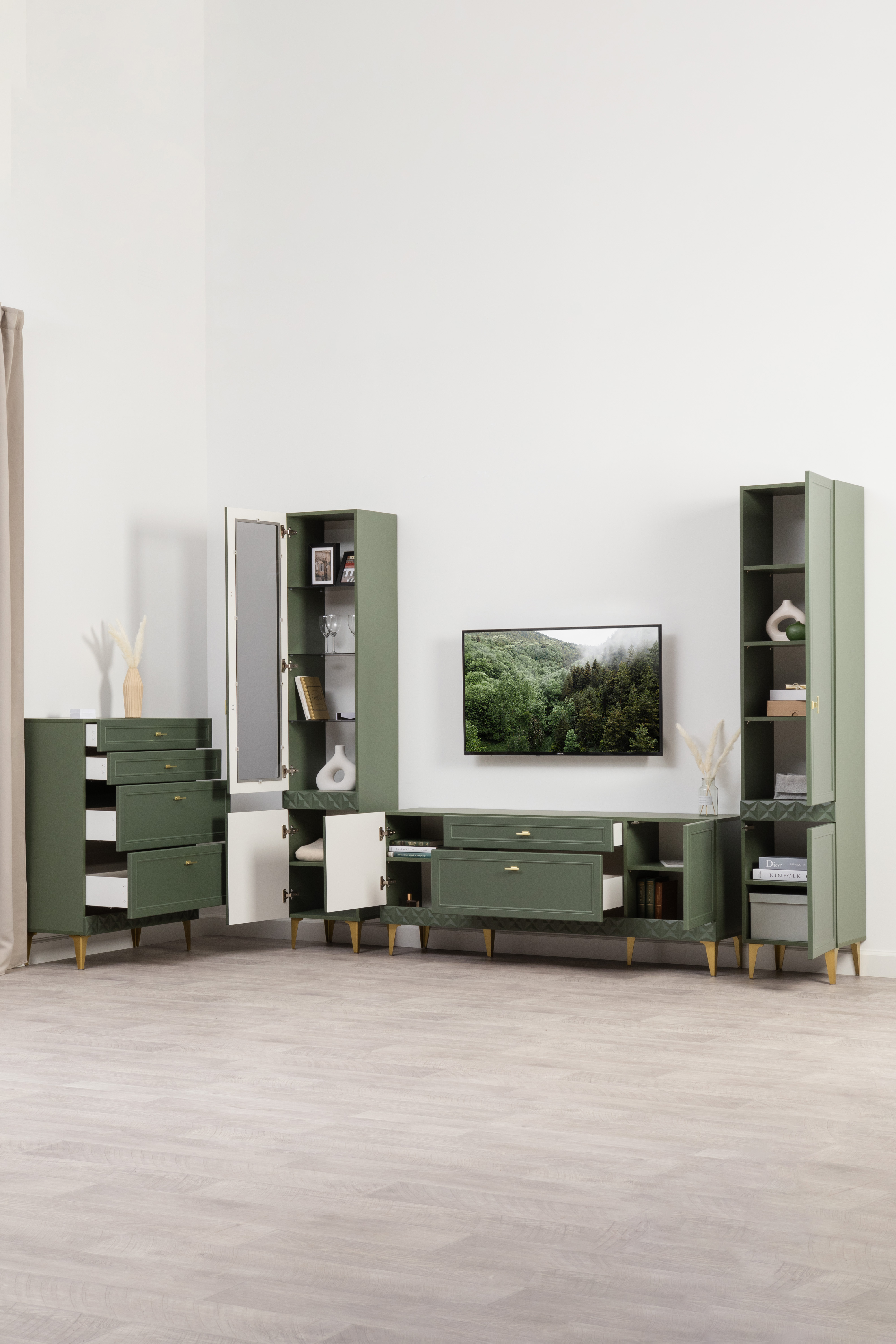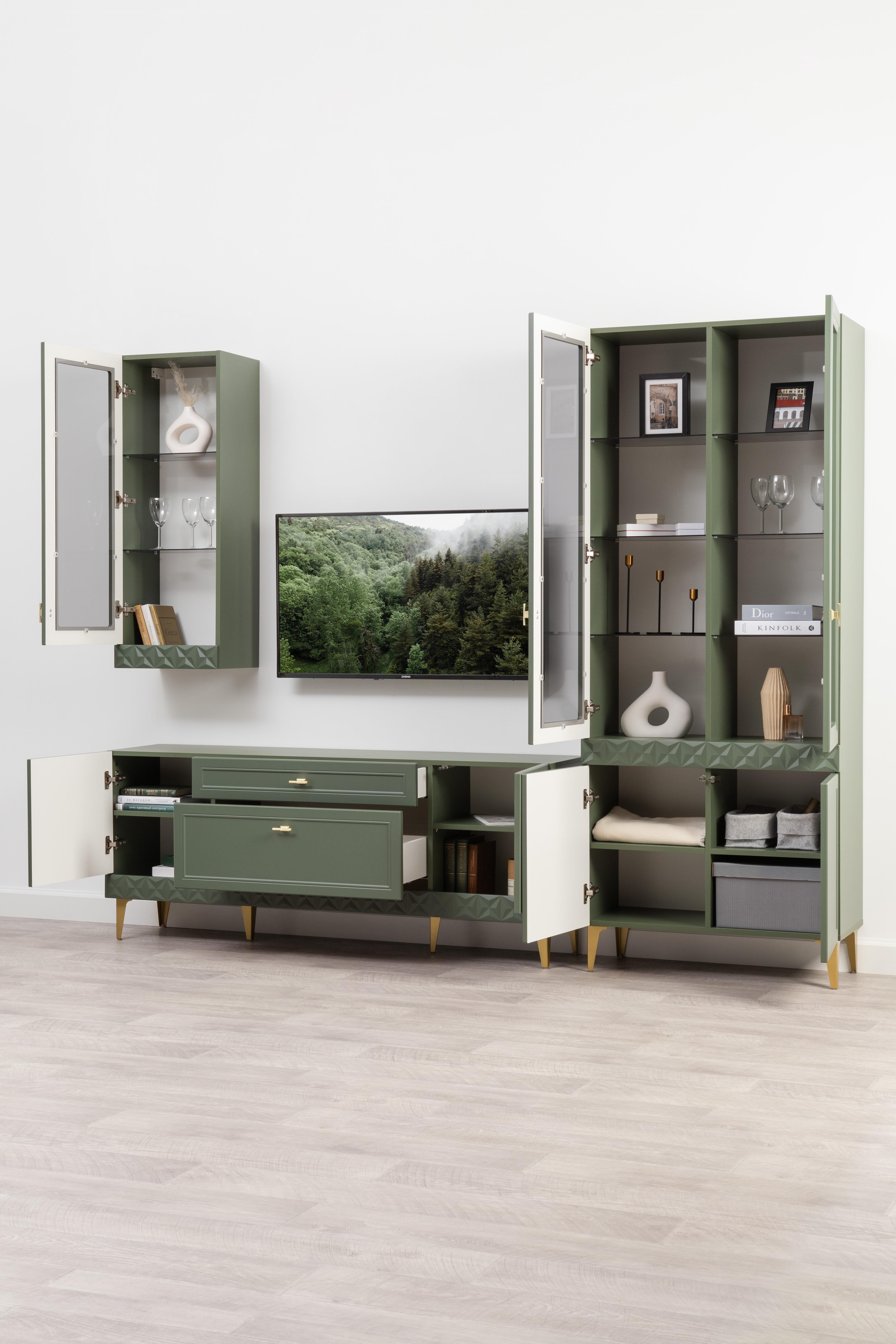 Гостиная Марион композиция 1 дымчатый зеленый K521, олива шагрень AG 1050 ПВХ, белый PE шагрень (собирается на любую сторону)
