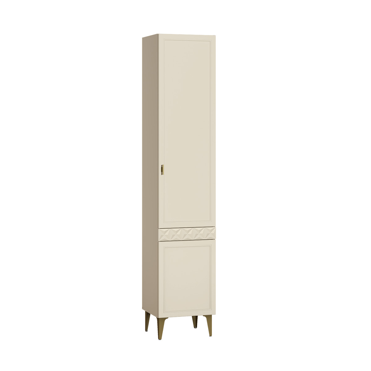 Изящные линии, глубокая фрезеровка фасадов из МДФ и благородные оттенки. Утончённая «Слоновая кость» и изысканная «Олива Шагрень» с глубоким зелёным тоном — создают атмосферу уюта, тепла и благородства. Металлические ручки и опоры золотого цвета придают мебели утончённый блеск, а петли и направляющие с доводчиками обеспечивают плавное и бесшумное закрытие фасадов.