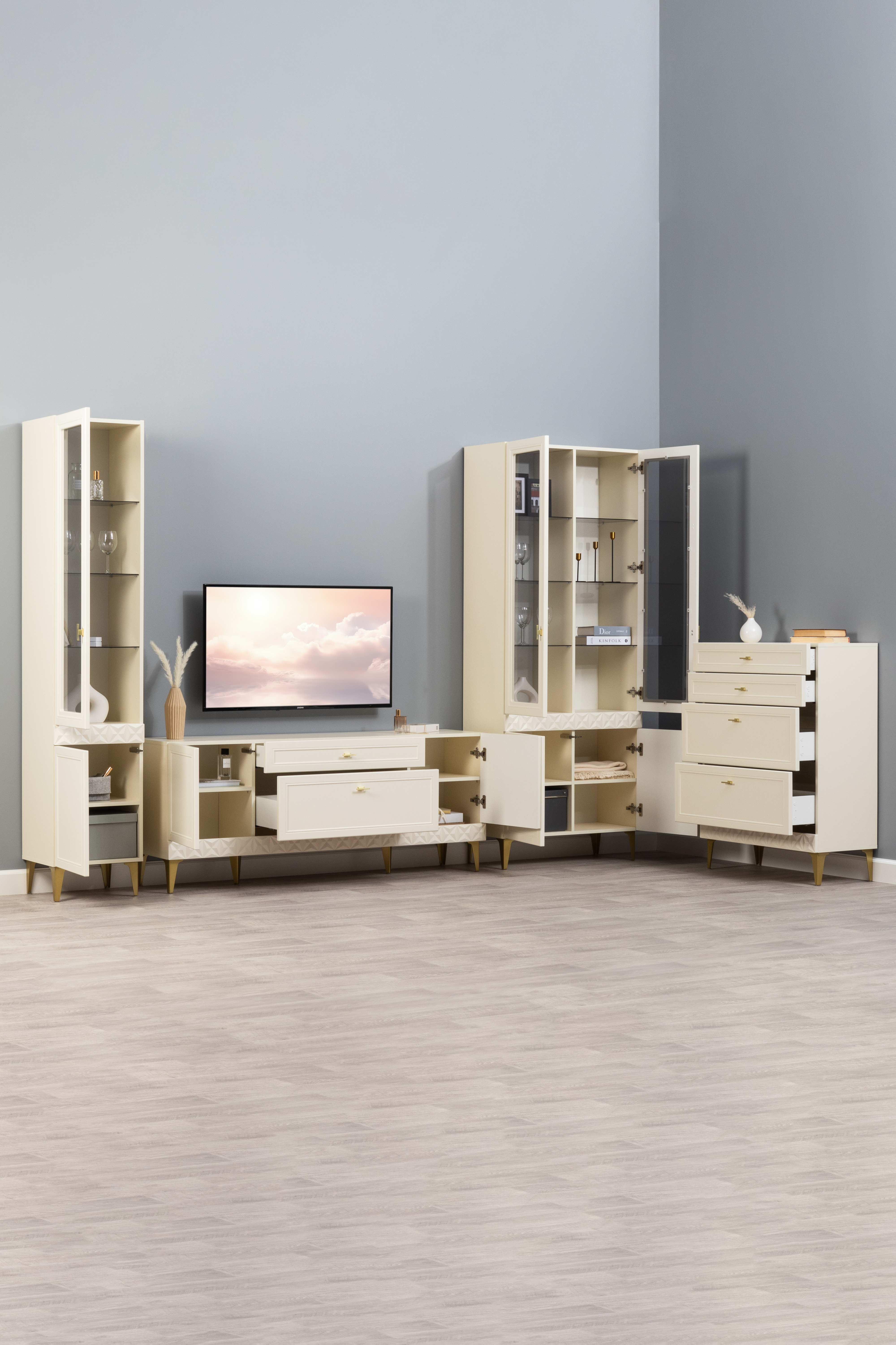 Гостиная Марион композиция 3 слоновая кость С341 PE, слоновая кость 6898 ПВХ, белый PE шагрень (собирается на любую сторону)