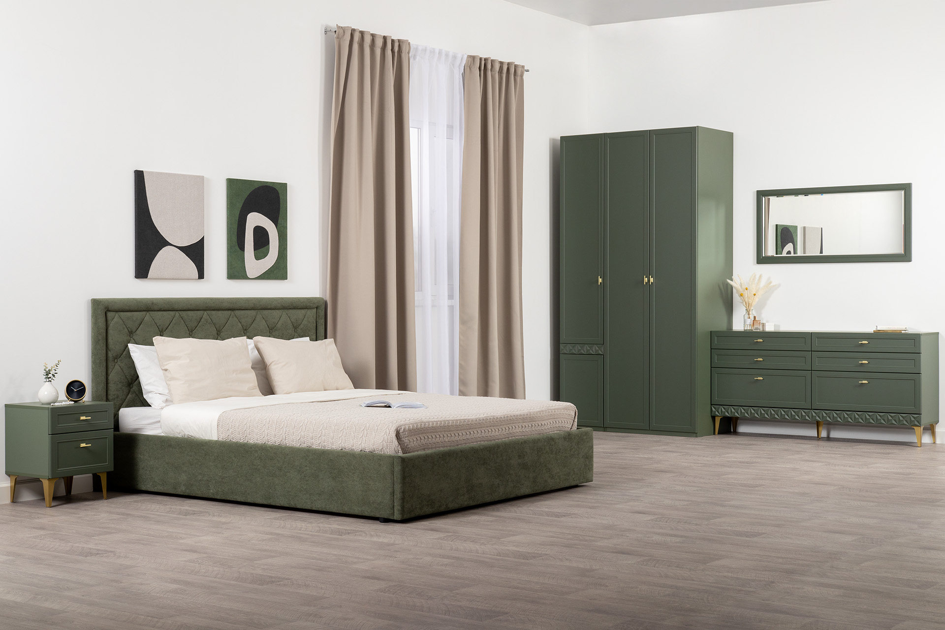 Комод Марион 16.256 дымчатый зеленый K521, олива шагрень AG 1050 ПВХ, белый PE шагрень