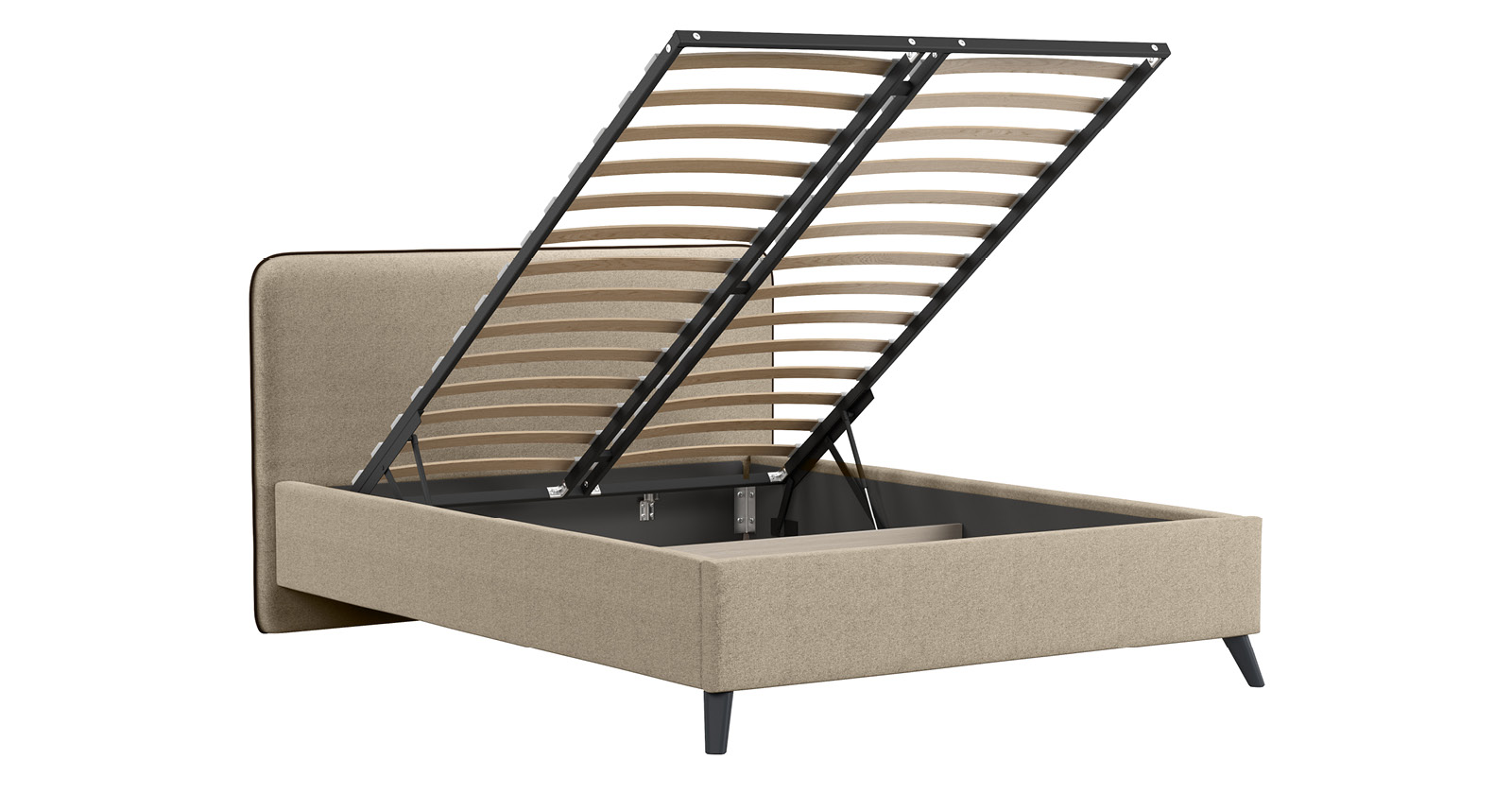 Кровать Миа 180 светло-бежевый, кант желтовато-коричневый с ортопедическим основанием и подъемным механизмом