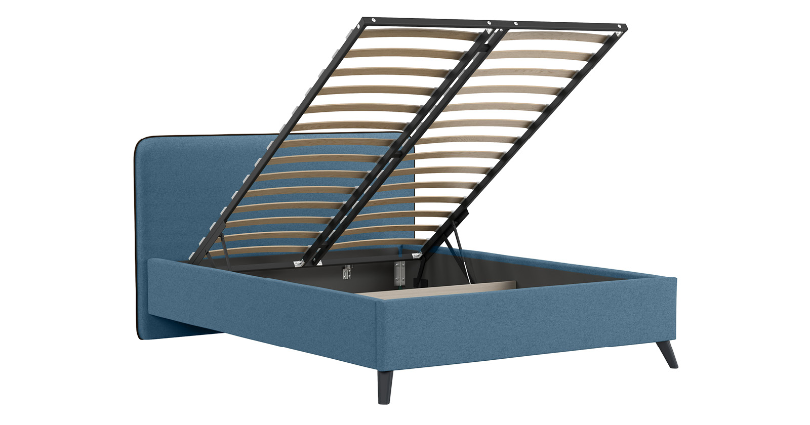 Cкругленный торец изголовья оформлен контрастным кантом.