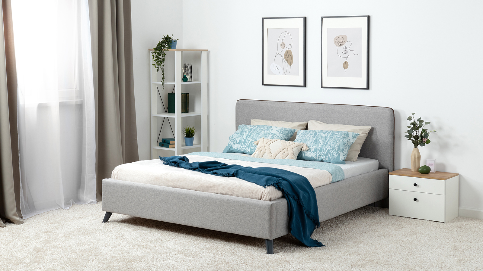 Кровать Миа 160 жаккард серый с ортопедическим основанием и подъемным механизмом