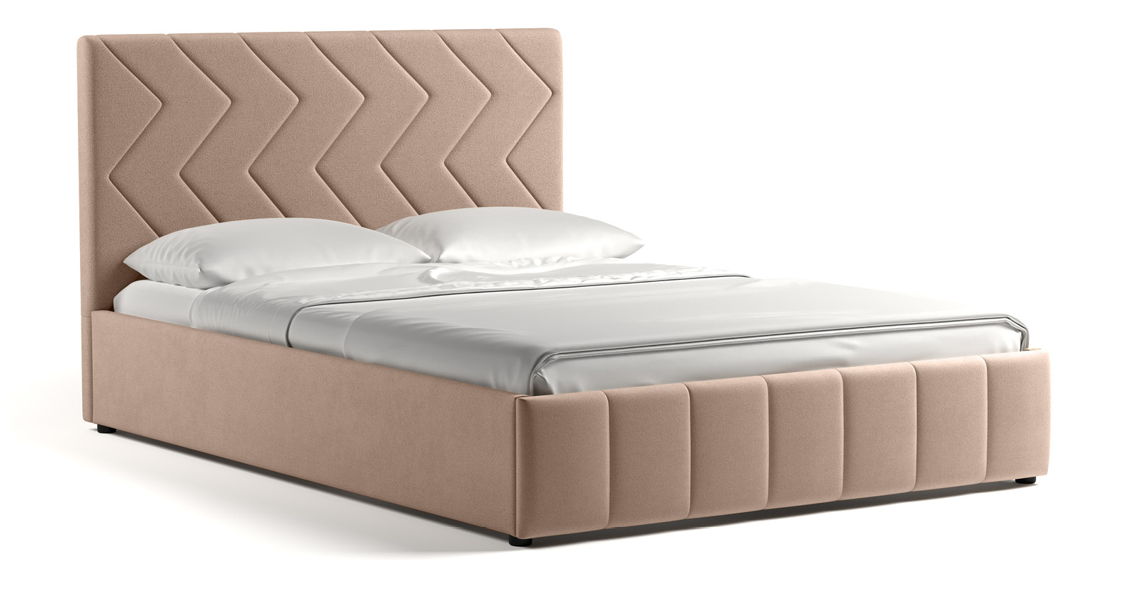 Кровать Милана 160 велюр бежевый кофейный с ортопедическим основанием и подъемным механизмом
