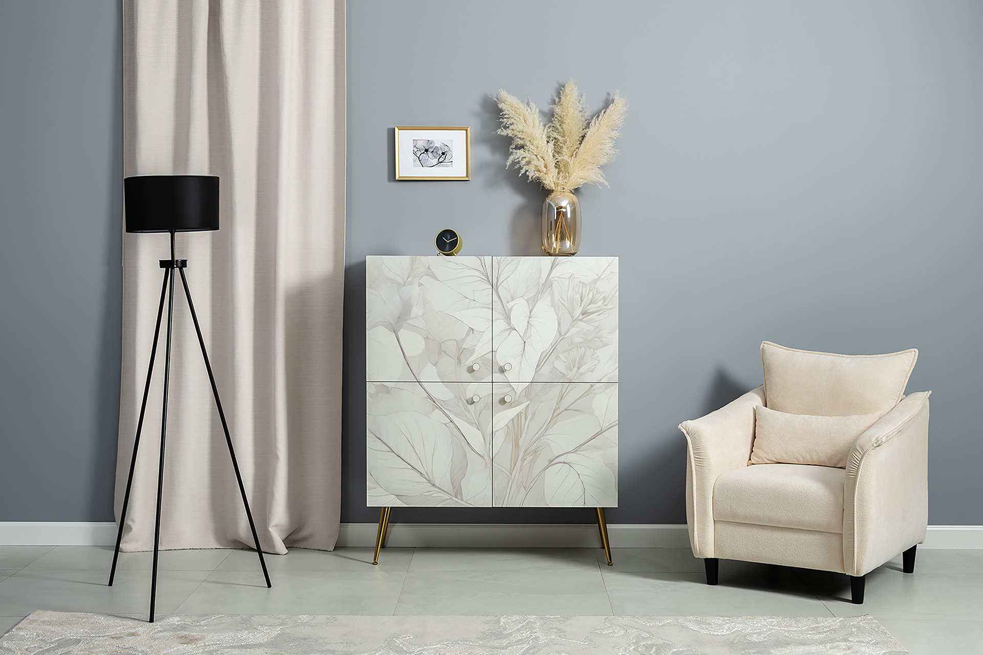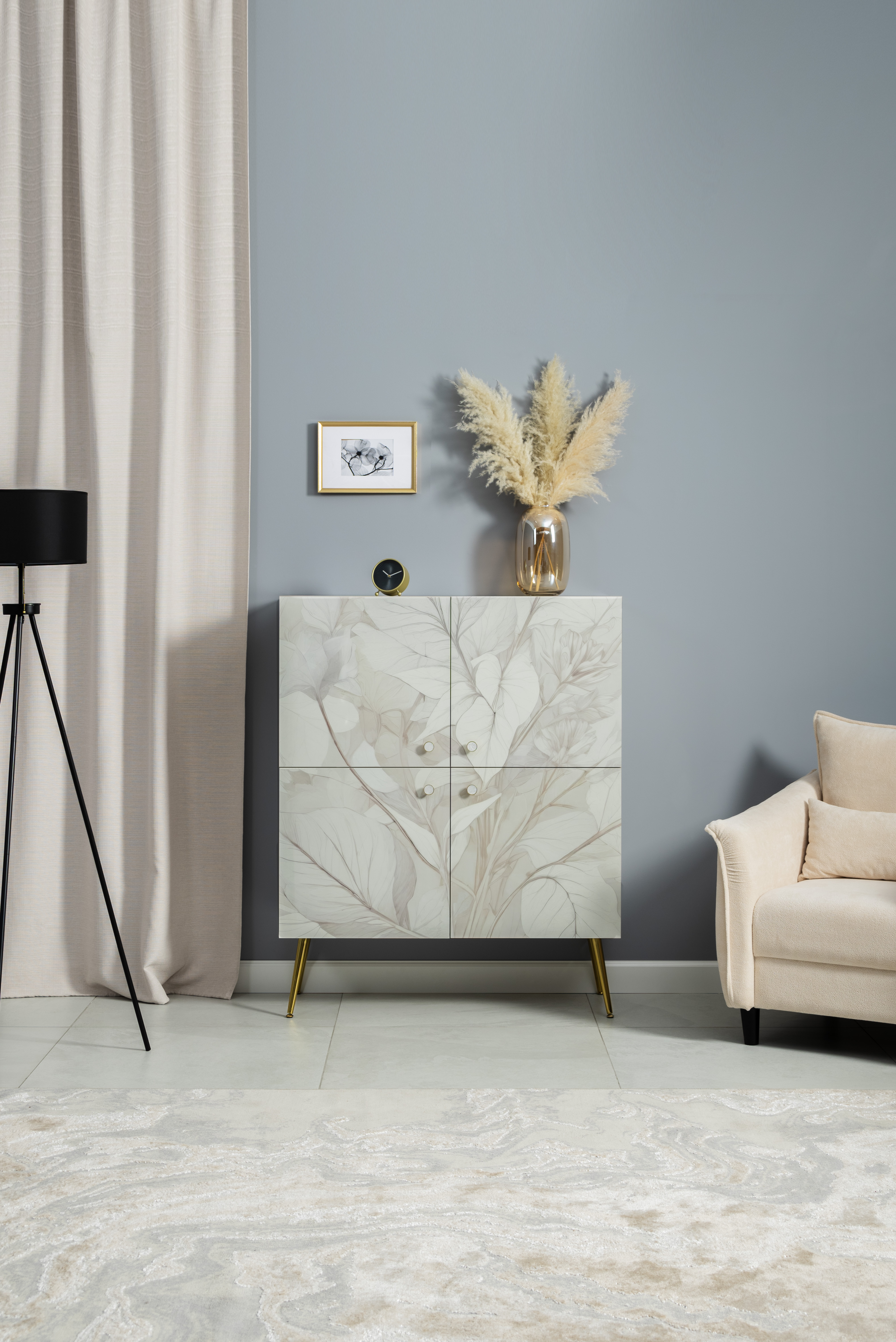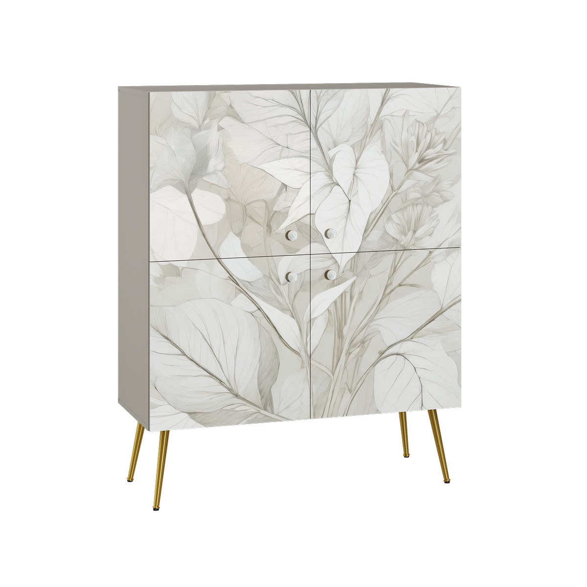 Шкаф Флоу 16.329 выделяется растительным принтом на фасаде, создающими свежий и стильный акцент в интерьере. Металлические ручки и опоры с регулировкой придают конструкции надежность и современный вид. Вместительные отделения, петли с доводчиком и скрытая задняя стенка обеспечивают удобство хранения и аккуратный внешний вид.