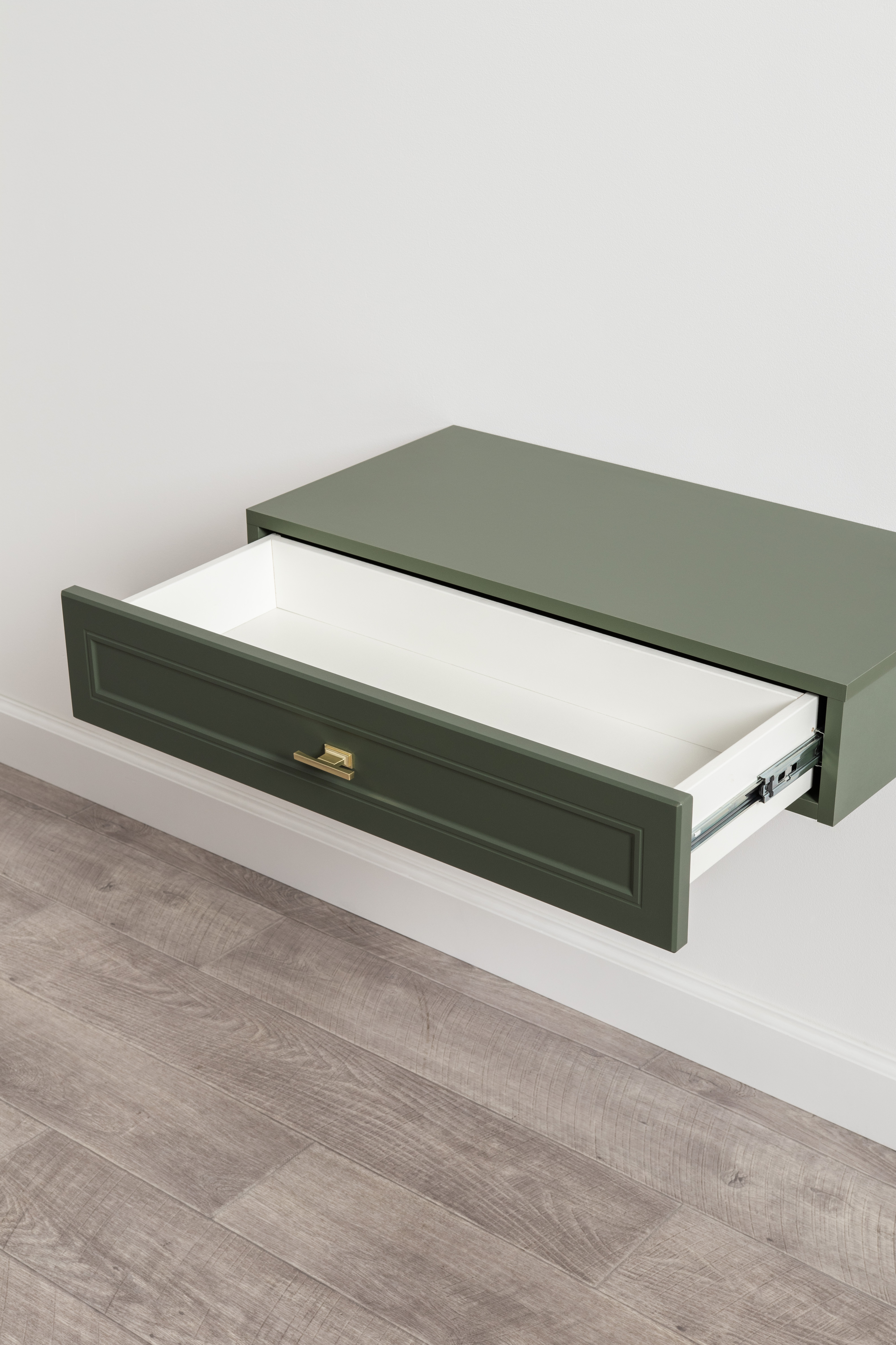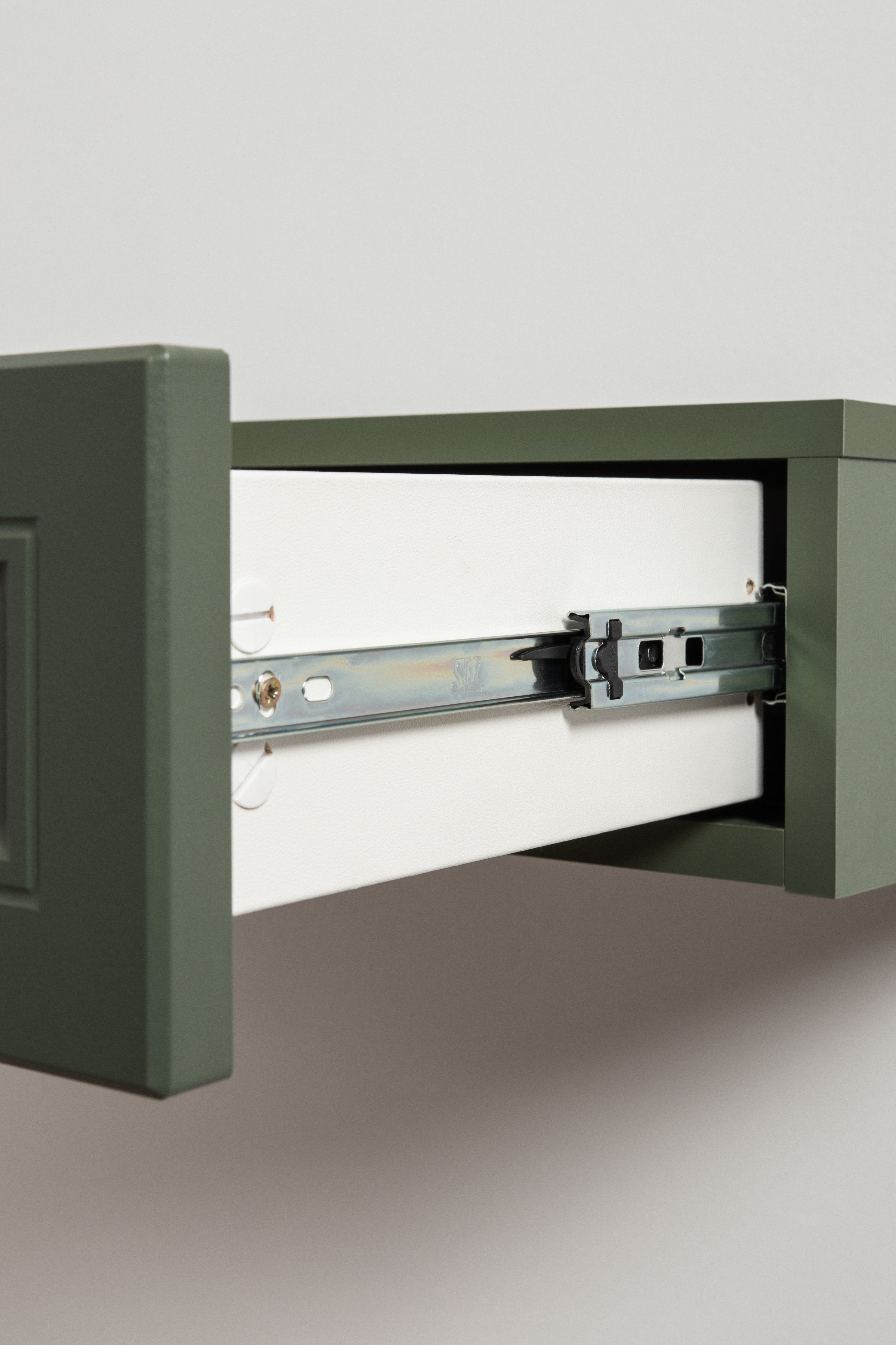 Тумба прикроватная Марион 16.14 дымчатый зеленый K521, олива шагрень AG 1050 ПВХ, белый PE шагрень