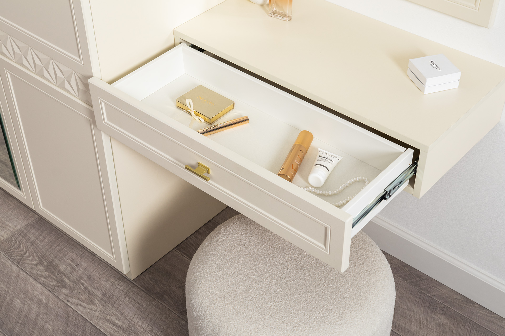 Тумба прикроватная Марион 16.14 слоновая кость С341 PE, слоновая кость 6898 ПВХ, белый PE шагрень